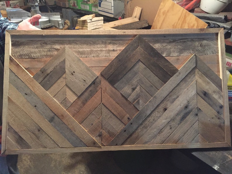 Rustic mountain ridge reclaimed wood wall art | etsy.